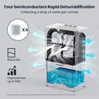 Dehumidifier, 81OZ (1000 Sq.ft)Dehumidifiers for Home Silver Product Details Brand: DDVIVAL Floor Area: 1000 Cubic Feet Color: Silver Special Feature: Portable,Ultra Quiet,Auto Shut Off,Colorful Lights,with Drain Hose,Anti-Spill Capacity: 2.4 Liters Tank Volume: 81 Fluid Ounces Product Dimensions: 8.05"D x 5.15"W x 13.13"H Number of Speeds: 3600 Recommended Uses For Product: Basement,Home,Room,Bedroom,Bathroom,RV,Closet, boat, SHIP Included Components: Dehumidifier,Drain Hose,Manual,Removable Tank 【High Efficient Dehumidification】DDVIVAL advanced dehumidifiers equipped with four dehumidification condensers can collect a drop of water per minute(Compared with the traditional double dehumidifier condenser, the dehumidification performance is improved by 150%), maximum dehumidification area up to 1000 sq ft. The dehumidifier effectively absorb up to 50oz excess moisture per day (Tested in 86°F, 80% RH), Create a healthy environment and stay away from moisture troubles 【 Two Working Modes &Ultra Quiet】The dehumidifier designed with high power mode and sleep mode that meet various needs. You can freely switch between 2 modes. The sleep mode is super quiet with noise levels below 30dB, allowing you to use noiselessly while rest. 【Auto Shut-off & Extra drain hose】DDVIVAL dehumidifier have auto shut-off feature prevents leaking or overflow when water tank is full. The red indicator flashes to remind you to empty the tank. Its auto-off function makes it be safe to use even when you are not at home. The dehumidifier is also equipped with a drain hose(1.5m), which allows the dehumidifier to automatically and continuously drain water, eliminating the need to empty the water tank all the time. 【Portable & Compact Design】 Size: 7.9 x 5.4 x 13.9 inches. The dehumidifier with ergonomic recessed handles, Easy to place anywhere. Lightweight and portable, this dehumidifiers for home can be positioned in various spaces such as the bedroom, bathroom, closet, kitchen, cabinet, garage, RV, boat, SHIP,Basements and other occcsions.