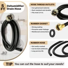 This dehumidifier drain hose is the perfect solution for efficiently removing excess moisture from your home or workspace. Crafted from durable pvc, this 5-feet long hose is designed to withstand wear and tear, ensuring long-lasting performance. With a 3/4-inch FHT (female hose thread) connection, it seamlessly integrates with most dehumidifiers, providing a secure and leak-proof fit. The flexible design allows for easy maneuvering and installation, making it a versatile choice for various applications. Whether you're combating humidity in your basement, laundry room, or any other space, this drain hose offers a reliable and convenient way to channel the collected water away from your dehumidifier. Invest in this essential accessory and enjoy a more comfortable, moisture-controlled environment. Premium Quality: Our Dehumidifier Drain Hose is made of premium pvc with nickel-plated brass connector fittings which fit standard 3/4" hose thread outlets. It is compatible with most brands of dehumidifiers and can also be connected to various valves and hose taps. PVC Material: We use only the premium PVC material to ensure that our hose is thick, leak-free, flexible, easy to store, and easy to install without kinking. Excellent Compatibility: In addition to being a dehumidifier drain hose, our product is also available in various lengths, making it perfect for use as a garden hose. Easy to Use: Our dehumidifier drain hose is easy installation. Just thread the hose fitting onto the dehumidifier and place the other end of the hose into the drain - We include sealing tape! Customer Service: We offer excellent customer service, feel free to contact us with any questions!