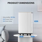 Specifications Place of Origin #originPlace# Main Color White Main Material Iron+Plastic Dangerous Goods #dangerFlag# Dimensions & Weights Assembled Length (in.) 10.00 Assembled Width (in.) 8.60 Assembled Height (in.) 18.10 Weight (lbs) 19.80 Product Features Efficiently eliminating up to 30 pints of moisture per day, this basement dehumidifier is perfect for spaces up to 2,000 square feet, maintaining a dry and comfortable living environment, preventing mold and mildew, and keeping your home fresh. Energy Star Certified: Embrace an eco-friendly lifestyle with the latest 2024 Energy Star Certification. By doing so, you'll not only shrink your carbon footprint but also enjoy reduced energy bills, making for a sustainable and economical living solution. Distinctive Design: Comes with easy-to-move wheels and handles for effortless mobility. Boasts a quiet fan operation, ensuring minimal noise. The filter is removable and washable, making cleaning and maintenance a piece of cake, facilitating a sanitary and effective dehumidification process. The unit provides flexible drainage options with a 4.9-feet drain hose for continuous drainage or manual drainage using the water tank. You can choose the method that best fits your needs for consistent moisture control without the need for constant monitoring. The home dehumidifiers offers three adjustable modes for optimal performance. You can easily customize it to your preferred humidity level and keep it running all day, every day. When the water tank reaches its maximum capacity, the bathroom dehumidifier will automatically turn off, ensuring safety and preventing any potential overflow. Description