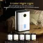 Dehumidifier For Home, 33.8 OZ Small Dehumidifier 5 Color Lights Quite Portable Dehumidifier For Basement, Bathroom, Bedroom, RV With Auto-off, Auto Drain Remove Odor High Efficient Safe Dehumidifier: The size of this portable dehumidifier is 7.12*4.84*10.59 inch. Featuring a 50oz tank and removing up to 34oz of moisture daily (at 86°F and 80%RH). Ideal for 107-850 sq ft rooms. With Drain Hose: This dehumidifier also be connected to the water pipe to automatic drain, when you are not at home, you can safely use the dehumidifier. Make your life so comfortable. Ideal product for Christmas. Multi-functional Dehumidifier: Not only remove moisture, this home dehumidifier also can remove odor,release fresh air,and create a healthy and comfortable environment for you. DEHUMIDIFIER MODES: The dehumidifier offers a powerful mode that efficiently reduces humidity, quick and effective moisture elimination. Additionally, it has a sleep mode with a low-speed operation that operates quietly (< 30 dB) while you sleep. Auto Shut Off Function: When the water tank is full or positioned incorrectly, it will automatically stop working to prevent water overflow. And the indicator will turn red once the water tank is full, which is safe and convenient to use. Energy Efficient: It uses only 60W with high-speed brishless rurbo blades,which can save energy and electricity while achieving high energy efficiency. FIVE COLOR OPTIONS FOR AMBIANCE LIGHTING: Choose the night light color you want, Step : Press ON button for 5 seconds Till the the light Flashing. Step : Press ON again to change to the color you want or turn off the color. Portable Dehumidifier: The small dehumidifier with a compact size and make it easily take it to every corner in your home or any close apace, such as bathroom, bedroom, living room, basement, kitchen, office, school, RV, car, closet and so on.