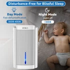 POWERFUL PERFORMANCE: Our small dehumidifier effectively absorbs up to 40oz excess moisture per day (Tested at 86°F, 80% RH), keeps the room humidity below 45% (The suitable humidity for the human body is 40%-60%), Basement dehumidifier is effectively eliminate damp odor and improve human comfort. Dehumidifiers can cover 1000 sq ft and are perfect for bathrooms, basements, bedrooms, and RVs. SLEEP WELL: Thanks to advanced semiconductor technology, in sleep mode, the small bathroom dehumidifier's noise level is as low as 30 decibels, which will not keep you awake at night, and the portable dehumidifier lights will automatically turn off. OVERFLOW AUTO STOP PROTECTION: Our small room dehumidifier is designed with a smart auto stop function. When the water tank is full or positioned incorrectly, a home dehumidifier will automatically stop working to prevent water overflow. This feature ensures your safety and convenience, even when you're not at home. To reduce the frequency of emptying the water tank, we specially equipped the dehumidifier with a 95-ounce large-capacity water tank. USER-FRIENDLY: Air dehumidifier for home has a simple design that sets up in seconds. just a couple of buttons to control power, lights, and quiet(sleep) mode. A quiet dehumidifier with a compact size of 13.78X7.95X6.22 inches, it can be seamlessly integrated into any space. 7 COLOR NIGHT LIGHTS: The smart dehumidifier is also equipped with a beautiful LED light, which not only adds a touch of elegance to the device but also acts as a functional indicator light (a red light turns on when the tank is full or in the wrong position), even in dimly lit rooms, the soft lighting also allows you to easily monitor the status of your equipment, ensuring you are always aware of its performance.