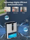 【Efficient Dehumidification】Small dehumidifier with 2L capacity large water tank to extract up to 1L of water per day in a humid environment at 86°F with over 90% RH. Dual-core dehumidifier engine, suitable for use in basement, bedroom, bathroom, closet, RV and more. Moisture is kept below 45% to powerfully decrease water from the air. This is a lifesaver in areas with high humidity, especially in emergencies such as the rainy season or after floods, effectively damp rid and keep the air dry. 【Personalized water storage】 Our dehumidifier with drain hose has two modes of water treatment: 1. We can choose the storage tank for us to collect water in the air, with 2000ml capacity space to meet the water storage needs of our home environment. 2. We can also choose the humanised automatic drainage system, the water tank water to reach a certain level of automatic conduit discharge to save the operation of cumbersome to improve the efficiency of dehumidification work. 【Quiet Sleep Mode & Color LED Light 】Dehumidifiers for home has two working modes. When you sleep or need to focus and don't want any distractions, short touch the sleep mode button to enter sleep mode. And the operating sound does not exceed 30 db. All the lights are off and the wind sound is reduced, giving you a lower noise environment. This dehumidifier for bedroom has 5 changing LED lights to create a sweet and romantic atmosphere. You can also choose your favorite color or turn it off. 【Safe and Smart Design】Our home dehumidifiers are compact and fit in a variety of home Spaces. The large intuitive tank and simple operation panel allow you to easily understand the amount of water and operation. The dehumidifier also has the full water prompt and auto shut off function to prevent water overflow and is safe and easy to use when not at home. Let our reliable dehumidifier for basement with longer power cord and service life accompany you to enjoy a comfortable life longer! 【Create a healthy and comfortable environment】This dehumidifier for home is a solution for humidity problems in basements, bedrooms,bathrooms, wardrobes, closet,RV etc.When the humidity level exceeds 45%, the dehumidifier starts to work,providing you with a healthy and comfortable environment. It helps to reduce odors in the air and gives you fresher air.