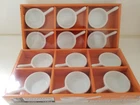 This set of twelve round dipping bowls is perfect for any occasion. The bowls are made of high-quality porcelain and are designed to withstand oven, freezer, microwave, and dishwasher use. The smooth finish and solid pattern make them a great addition to any kitchen or dining room. Each bowl has a diameter of 6 inches and is perfect for serving dips, sauces, or other small dishes. The set is ideal for hosting parties or for everyday use. The bowls are branded with the Denmark logo and are sure to impress your guests. Brand new in boxes. Opened one box for photos. Please view photos.