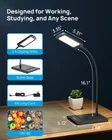 Eye-care LED Desk Lamp: A unique surface lighting source and innovative light guide panel create a flicker-free, anti-glare light without ghosting, ideal for children, students, or people with vision problems such as macular degeneration. No more eye fatigue. This soft, non-glare desk light is perfect for when you're working, reading, or crafting 3 Color Modes Task Lamp: Long press the LED power indicator to activate 3 distinctive lighting modes. Choose the right color temperature with this desk lamp to meet your various lighting moods – Working 6000 K, Reading 4500 K, Relaxing 3000 K 7 Brightness Levels Table Lamp: By swiping at the dimmer groove, you can adjust the brightness up to 7 levels, fun and easy to use. This adjustable dimmer led desk lamp is perfect for home, office, bedroom, nightstand, or kitchen. Even smarter, the integrated memory function can remember the light setting from your last use Flexible Gooseneck Lamp: This table lamp features an ultra-slim base (0.63” thick) and a low-profile design, fitting perfectly with your home or office decors. The flexible gooseneck (16.1”, fully extended) allows you to bend the lamp towards wherever you want Long Lifespan and Energy Saving: Up to 40000 hours lifespan (22 years if used 5 hours per day), 40 times longer than a typical incandescent light. This desk lamp consumes 70%-80% less power than traditional incandescent lamps and does not contain mercury or lead, no UV or IR radiation