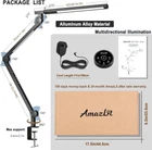 Desk Lamp with Clamp, Eye-Care Swing Arm Desk Lamp, Stepless Dimming & Adjustable Color Temperature Modern Architect Lamp with Memory & Timing Function for Study, Work, Home, Office, 12W Product Details Finish Type: Brushed Base Material: Metal Product Dimensions: 16.5"D x 3.2"W x 24"H Item Weight: 1.05 Kilograms Lamp Type: LED ❤ [Eye-care, Adjustable Brightness & Color Temperature] -- Dual light source provides decent brightness and various color temperature options. Flicker-free and glare-free illumination covers your entire desk area. 5 Brightness levels and adjustable color temperature (from 3000K to 5500K). Ideal for reading, working, thinking, relaxing, drawing, knitting, sewing, hobby, handicrafts, etc ❤ [4 Common Lighting Modes] -- According to the usage habits of most people, we have set 4 common lighting modes. Reading Mode, 4000K & 100% Brightness. Relaxing Mode, 3000K & 100% Brightness. Working Mode, 5500K & 100% Brightness. Nightlight Mode, 3000K & 10% Brightness.You can easily get what you want ❤ [Timer Function, Memory Function] -- We have built-in automatic delay-off function in the desk lamp. It can be set to 10 or 40 mins before sleeping, then it will turn off automatically. It is not necessary to worry about getting out of the warm bed to turn off the light. Compatible with wall switches and smart plugs. The light will be on/off instantly when you control the light via wall switch or smart plug. The lamp will return your last setting(mode) when you turn it on next time ❤ [Sturdy Metal Clamp, Flexible Long Swing Arm] -- Extra wide metal clamp comes with silicone pads. Strong clamp supports up to 2.7in/ 6.8cm desktop and holds the swing arm lamp securely in place. Saving space and keeping your desktop clean. With versatile 6-axis design, freely adjustable angles and multiple positions, you can adjust the light direction according to your personal need