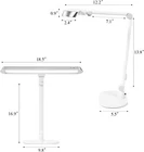 Desk Lamp with Clamp for Home Office, Dimmable Eye-Care Architect Table Lamps with Touch Control, 19W LED Desk Lights Adjustable Gooseneck with Base for College Dorm Room, Reading Drafting About this item Stand and clip-on desk lamp with dimmable eye caring function (10%-100%) for long-time reading, home office, writing, studying, nailing, drawing, drafting, crafting, painting, working, task, etc. Eye-friendly LED panel for preventing hazardous blue light. No glare, no flickering, no shadow. Effectively protecting your eyes from fatigue, maintaining a high Color Rendering Index of over 98 for accurate color reproduction. Sensitive touch control with simple operation: Gesture switch, memory function, motion sensor for seating, adjustable brightness, upper lights, color temperature change mode, and reading modes. Equipped with a smart integrated touchpad. For gesture switch turn the light on or off with a gentle wave of your hand within 6 inches of the sensor. The memory function will restore your last setting. Architect Desk Lamp with an aluminum body with excellent heat dissipation performance. Long flexible gooseneck for easy positioning and setting of lighting directions. Please be careful moving the heavy metal base.
