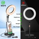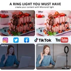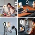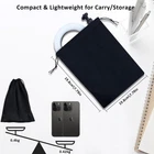 【 Dimmable Light 】The 5 inch ring light is dimmable which has 3 color modes, each modes has 10 brightness levels, it is soft and bright enough to need your lighting need. It is powered by 5V USB, then computer/laptop/wall charger/power bank can be the power source for this circle light 【 Extendable Stand 】 The ring light table stand is telescopic, height can be adjustable from 8.5inch/21.5cm to 17.3inch/44cm. This makes it easy to place the ring light behind your computer, laptop or monitor. 【 Angle Adjustable 】The connector to ring light on stand is rotatable, then you can adjust the ring light angle easily. Perfect for your Tiktok/YouTube live stream, video recording, photography, make up, selfie, video conference 【 Compact & Lightweight 】 The whole light kit is compact design and lightweight, you can pack them up into a included pouch. So convenient to carry it on when on the go/ travel/business trip, not take much space in your bag or luggage. 【 Built-in Phone holder 】 There is built-in phone holder at the base, you can put your phone or tablet on it. Great for your phone zoom calls or factime with your family or friends.