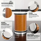 Professional Diamond Rolling Knife Sharpener - Rolling Knife Sharpening System for Kitchen Knives - Knife Sharpener Kit This professional Diamond Sharpener Set is the perfect addition to any kitchen or workshop, designed for precise sharpening of knives and tools. With its manual operation, it allows for efficient sharpening without the need for electricity or batteries. The set includes a durable wooden base with diamond sharpening discs, offering a long-lasting sharpening solution. Available with different base options to suit various needs: 2-Angle Base : Provides 15° and 20° sharpening angles, ideal for most kitchen knives and everyday tools. 4-Angle Base : Includes 15°, 18°, 20°, and 22° angles, perfect for a wider range of knives and outdoor tools. 5-Angle Base : Offers 12°, 15°, 17°, 19°, and 22° angles, catering to those who require more precise and versatile sharpening for a variety of tools. Each base features a tumbler rolling knife sharpening function, ensuring a consistent and accurate sharpening angle every time. Whether you're a chef, DIY enthusiast, or outdoor adventurer, this Diamond Sharpener Set is a must-have tool to keep your blades sharp and ready for action. * About this item - Precise & Long-Lasting Sharpness: Any serious chef knows quality knives are expensive. Keep yours cutting like new for much, much longer with a rolling knife sharpener. With our easy-to-use system, anyone can get factory-sharp knives in minutes. - Powered by Diamonds: The sharpening disc is plated with nature's hardest, most-effective sharpening stones: diamonds. The 400 grit size effortlessly removes the first layer of your knife’s edge while restoring sharpness. - A Finer Edge: A proprietary grit ceramic honing disk on the other end of the kitchen knife sharpener removes the burr of your knife’s edge after the base sharpening. The result? A finer edge for more precise cutting that makes all kitchen tasks easier. - Simple, But Effective: The rolling knife sharpening kit is deceptively simple, but also surprisingly functional. Simply choose your angle and use the magnetic knife holder to secure your blade. Then, roll the sharpening disc back and forth until sharp. Finally, flip the sharpener over and hone the edge using the grit ceramic honing disk. The replacement discs are designed exclusively for use with our rolling sharpening stone system. On Jul 9, 2025 at 21:01:33 PDT, seller added the following information: