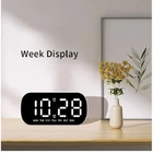 Function 1.Time/Date/Temperature /Week Display 2.Dual Alarm clock function Support to set Alarm frequency :1-5/1-6/1-7 1-5:Alarm rings from Monday to Friday 1-6:Alarm rings from Monday to Saturday 1-7:Alarm rings from Monday to Sunday 3.Brightness adjustment 5 Levels manual brightness adjustment 4.Two Display Modes Press “+” button more than 3s to switch display mode ①Time and week are displayed on the same screen ②Time/date/temperature+week circle display 5.Time memory function Available when powered by battery and plug in use at the same time 6.Night Mode If night mode is on,Brightness darkens at night (22:00-6:00) 7.12/24 hour format switch (1)Time Display (2)Press S button more than 3s 24Hr Display (3)Press UP or DOWN can switch to 12Hr 8.℃/℉ Switching Press “-” button more than 3s to switch ℃/℉ Product Show Material: plastic Power type: external power supply(USB powered) Color: black white light, black green light, black blue light,black pink light,black orange light USB Cable Length:100cm/39.37inch Package size: 14*8.5*4cm/5.5*3.3*1.6inch Product size: 13.5*6.5*3.5cm/5.1*2.6*1.4inch Package: 1xDigital Alarm Clock 1x100cm USB Cable 1xInstruction NOTE 1:Take the protective flim on Clock Screen,it will be brighter. NOTE 2:It will go off after 10 seconds when only powered by 3xAAA Battery(Not Included).Press any key to wake up the alarm clock . If you want screen always on, please plug in use.(USB Included but Plug Not Included)