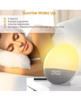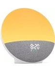 Start your day off right with this digital sunrise alarm clock radio. This wake-up light/sunrise simulator features a round, modern design with multicolor ABS frame material and white finish. It's battery-powered and works with both Amazon Alexa and Google Home for easy use. The clock radio comes with Arabic numerals and a digital display, making it easy to read at a glance. Its sunrise and sunset simulation feature helps you wake up and fall asleep naturally, while its Bluetooth speaker allows you to play your favorite tunes. This device is perfect for teens, adults, and kids, and can be used in both the bedroom and living room. With a 6-month manufacturer warranty, you can trust that this sunrise alarm clock radio will provide a great wake-up experience for years to come.