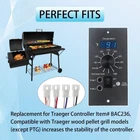 Digital Thermostat Kit for Traeger Control Panel Kit Parts Replacement, Compatible with Traeger Pellet Wood Pellet Grills,with 7" RTD Temperature, 2 Meat Probes.1 Probe Clips Product Details Color: Upgraded Controller+Meat Probe+RTD Brand: ZIZIXIATA Display Type: Digital Manufacturer: ZIZIXIATA Package Dimensions: 7.87 x 3.94 x 2.75 inches Item Weight: 1.1 pounds Manufacturer: ZIZIXIATA Country of Origin: China Batteries required: No Included Components: Control Panel x1Thermometer Meat Probe x2RTD Probe Sensor x1 Probe Hanger x2 Perfect Fits:Replacement for Traeger Controller Item# BAC236, Compatible with Traeger wood pellet grill models (except PTG) increases the stability of the controller, improving the compatibility of the Traeger control panel and equipped with more stable temperature control:Package Contains: Digital Pro Control Panel x1, Thermometer Meat Probe x2, RTD Probe Sensor x1, Probe Hanger x2 Easy install: plug and play, very simple. there are 4 quick connect wires and 1 RTD probe to connect.The red wire connect with auger motoer;the Purple wire connect with hot rod; the orage wire connect with fan; the black color connect with power supply Function Upgrade: Exact cooking thermostat, Bright LED display. Ten cook temperature settings 180 to 375 F (up to 450F) FUNCTION: Equipped with safety device and automatic cooling function, you can enjoy juicy BBQ grilling in safe.