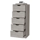 Specifications Place of Origin Colombia Main Color Gray Main Material Engineered Wood Filler Melamine Product Style Contemporary Use Case Bedroom Dangerous Goods #dangerFlag# Dimensions & Weights Assembled Length (in.) 16.30 Assembled Width (in.) 17.70 Assembled Height (in.) 42.40 Weight (lbs) 67.70 Product Features The pull-out mechanism makes it simple to reach your stuff, allowing you to swiftly locate what you want. It includes five drawers for storing everything from clothing to toys to shoes (14,3"W X 13,5"D) Each drawer has a maximum capacity of 5kg. Because of its small size, it can fit into any area, even those with restricted space. Decor and setting objects are not included Complete your room with other items from the collection (sold separately) TSCA compliant and okay to be sold in US FSC Certified CPSIA Compliant High quality and multifunctional use Description Dillon 5 Narrow Drawer Dresser ,Concrete Gray "Introducing the Dillon Narrow 5-Drawer Dresser! This perfect piece of furniture is ideal for anyone looking for a stylish and functional solution to their storage needs. At only 17.7 inches wide, this dresser fits snugly into any space, making it the perfect addition to any room in your home. And with five oversized drawers, there is plenty of room to store all your clothes and accessories. The durable construction and unique finishes make this dresser an excellent choice for anyone who wants a stylish and functional piece of furniture that will last for years. Designed with an elegant concrete gray manufactured wood finish. Dimensions: Height: 42,4"" Width: 17,7” Depth: 16,2“ Furniture Type: Ready to assemble (full assembly required).