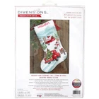 Create a vintage holiday farm scene in counted cross stitch on 14 count Aida. This wonderful keepsake is easy to personalize using the alphabet included in the instructions. Dimensions stocking stocking cross stitch kits also include instructions for how to finish as a stocking, and come with an easy-to-follow chart and key as well as detailed instructions and stitch diagrams. Plus, the packaging also features a large color image of finished design for reference as you stitch. This Christmas counted cross stitch kit comes with presorted thread, 14 count white Aida, felt for stocking back, 100% wool yarn for stocking hanger, needle, and instructions with an alphabet for personalizing. Completed Christmas counted cross stitch pattern 16" long. Original Artwork copyright Beth Grove, licensed by Wild Apple. This Dimensions cross stitch kit comes with presorted thread, 14 count white Aida, felt for stocking back, 100% wool yarn for stocking hanger, needle, and instructions with an alphabet for personalizing Completed counted cross stitch Christmas stocking measures 16" long Stocking design on 14 count Aida features a traditional holiday farm scene complete with a red truck, barn, snowman, and Christmas trimmings Dimensions counted cross stitch stocking kits feature instructions with an easy-to-follow chart and key, detailed stitch diagrams, and a guide on how to finish as a stocking Our cross stitch stocking kits also feature a package label that includes a large color image of the finished cross stitch design for reference as you stitch