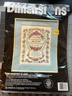 Dimensions cross stitch kit, Our Wedding, Betty Whiteaker, kit includes cotton embroidery thread, gold metallic thread, 14 count ivory Aida, thread palette, needle and instructions.