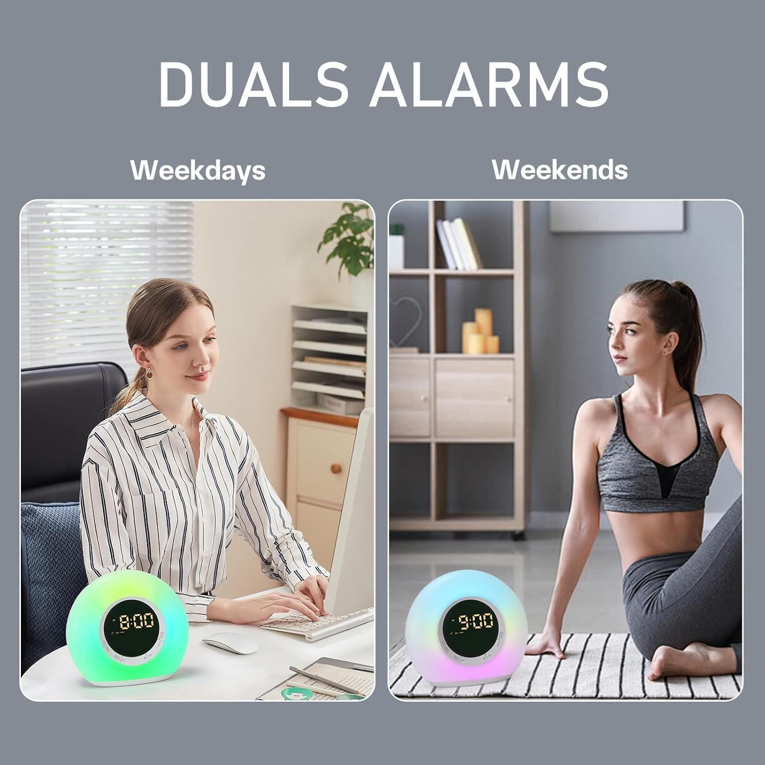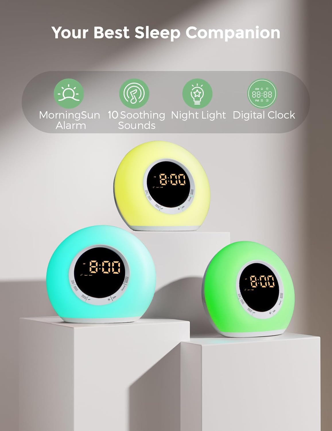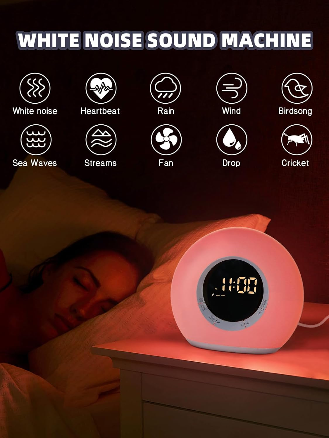 This alarm clock is a game-changer for heavy sleepers! The loud alarm and 10 white noise options help me fall asleep fast and wake up refreshed. The dimmable night light is perfect for late-night checks, and the dual alarms are great for different schedules. Compact, easy to use, and stylish—definitely worth it!