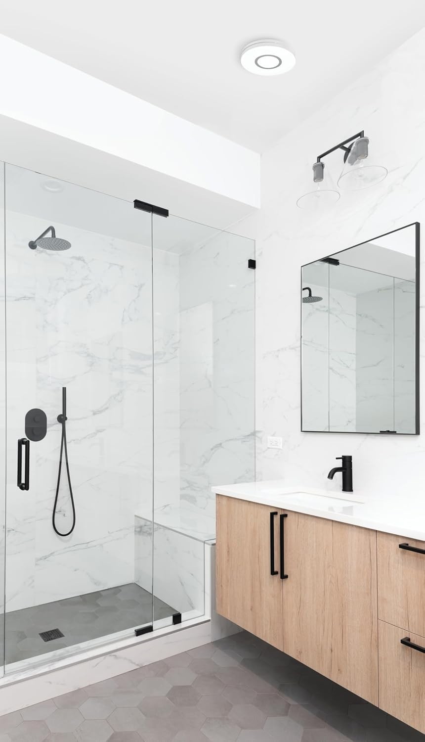 This bathroom fan is a game-changer! The dimmable LED lights with adjustable color temps create the perfect mood, and the quiet 80 CFM airflow keeps the room fresh without any noise. Love the added night light feature—so convenient for late-night trips. Installation was straightforward, and the sleek design blends seamlessly. Highly recommend for anyone upgrading their bathroom!