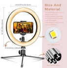 Ring Light for DSLR: AIXPI ring light comes with hot shoe mount which is compatible with dslr, you can mount dslr in the middle of the ring light or on the top of the tripod stand Adjustable Brightness: 3 colors lighting mode: white, warm yellow, and warm white. Each lighting mode has 10 level brightness, it can meet your different needs. This ring light includes 120 bulbs, more than other 8 in and 9 in ring light even some 12 in 14 in ring light Universal Phone Holder: The phone clip can be extended to 3.93 in, it is compatible with most smartphones with or without a case. And the phone clip allows you to install your phone horizontally or vertically USB Powered: The USB ports can be used with multiple devices,such as connect USB charger, mobile power, computer host and laptop. You will be able to enjoy LED ring light at any time freely Package Included: The product package includes a 10 in ring light, a tripod stand, a hot shoe mount, a metal ball mount, a phone clip