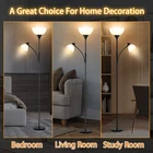 Dimmable Floor Lamp , Floor Lamps for Living Room Suitable for any room from industrial to modern or traditional decor, the clean and elegant design can be easily placed anywhere in the house. Simple in design, it matches perfectly with the furniture. Stepless dimming rotary switch, easy to control the opening and closing of lights. Light up your home Black modern floor lamps fit well with casual, urban, mid-century, or contemporary styles. Minimalist Design: This Floor lamp can easily be placed behind a sofa or next to a cabinet for easy space saving. In addition, the simple and modern design makes it not only a floor lamp for bedroom, living room, office or classroom, but also a perfect choice for home decoration. Gooseneck Reading Lamp: floor lamp has a 9W Main Lamp and a 5W Side Lamp, the adjustable gooseneck of the small lamp allows you to adjust angles to illuminate your projects, like reading, working or daily use. The Main Rotary switch can select different brightness from 0-100%, and the side rotary switch has ON/OFF function only. Included Bulbs: This standing lamp is equipped with 9W Dimmable + 5W Non-Dimmable LED bulbs (Both E26 Base), which can provide up to 60,000 hours of working hours. Emitting 3000K warm lighting causes less eye stress and fatigue to better protect your eyes. Note: Bulbs can Replaceable Safe & Easy Assembly: Simple and easy to assemble without extra tools, you just need to screw all the parts of the modern floor lamp working together by following the instruction. The bottom of the corner lamp adopts a weighted and stable design to prevent tipping and can be used near the elderly, children and pets; the lampshade is also made of resin plastic, which avoids the risk of breakage of the traditional glass lampshade. Ideal Gifts for Decorative: This floor lamps for living room is a perfect holiday gift and birthday gift for mothers, fathers, wives, husbands, children, and friends. The Black Floor Lamp is also suitable for living room, bedroom, reading room, office, library, kitchen, coffee shop, hotel, restaurant, etc.