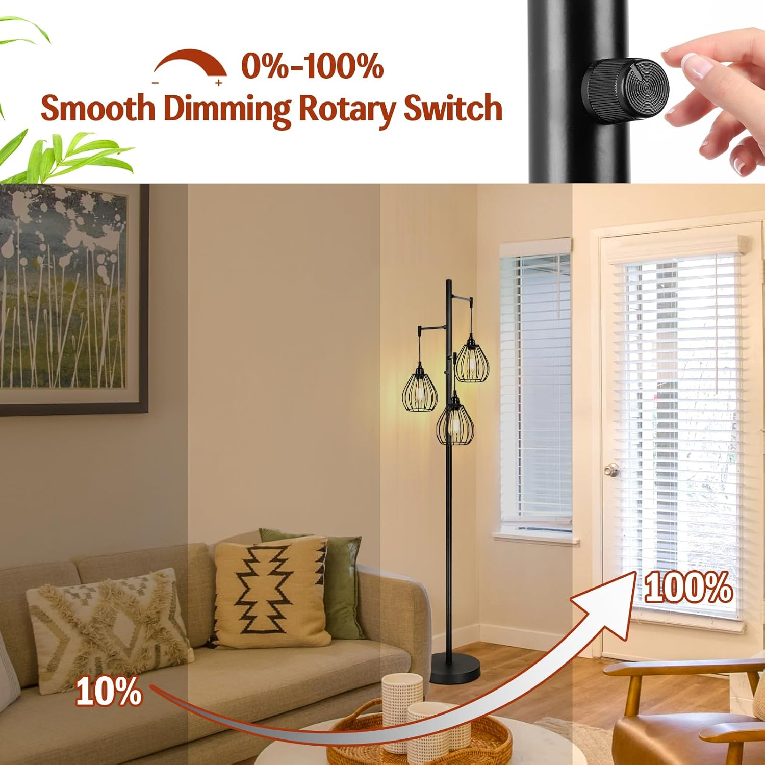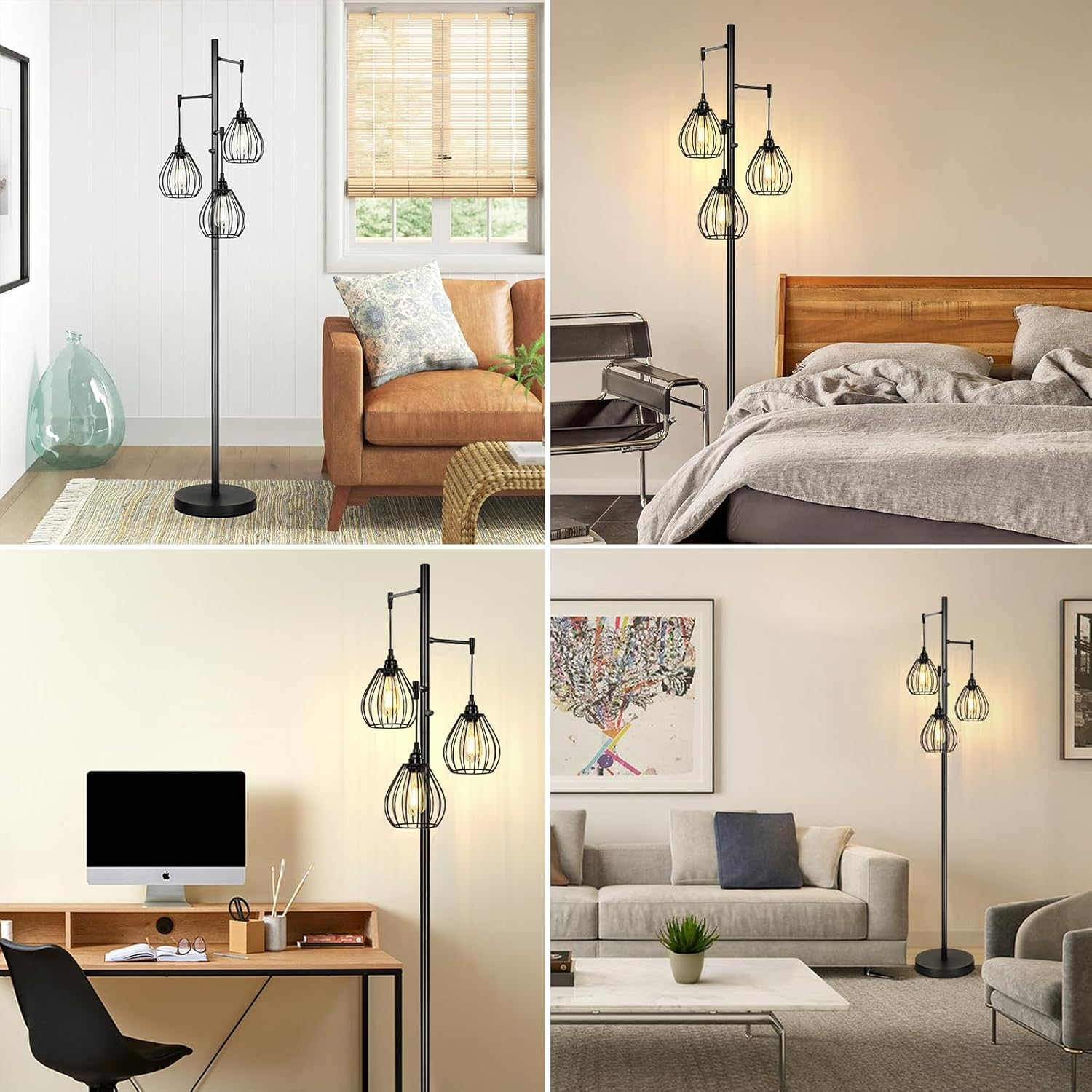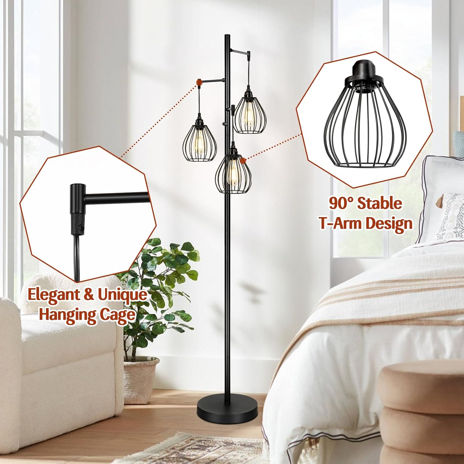 Dimmable Floor Lamp, 3 X 800LM LED Edison Bulbs Included, Farmhouse Industrial Tree Standing Tall Lamp with 3 Elegant Teardrop Cage Heads, Black Rustic Vintage Pole Lamp for Living Room Bedroom Office Ships from USA | 30-Day Free Returns Product Details: Item model number JF19071.3BK Light Source Type LED Style Modern, Farmhouse, Industrial, Minimalist, Rustic, Vintage Number of Items 1 Power Source Corded Electric Number of Light Sources 3 Country of Origin China Lighting Method LED Mounting Type Floor Mount Lamp Type Floor Lamp Batteries Required? No Bulb Shape Size A19 Installation Type Freestanding Product Dimensions 13.3"D x 13.3"W x 68.8"H Material Metal Efficiency High Efficiency Finish Type Metal Specific Uses For Product Dimmable bulb included, Upgraded Fully Rotary Switch, Easy Setup, Corded Included Components 3 x Free Bulbs, 3 x User's Manual, 1 x Floor Lamp Indoor/Outdoor Usage Indoor Item Weight 10.61 pounds Special Features Dimmable bulb included, Upgraded Fully Rotary Switch, Easy Setup, Corded Special Feature Dimmable bulb included, Upgraded Fully Rotary Switch, Easy Setup, Corded Part Number JF19071.3BK Shade Color Black Color Temperature 2700 Kelvin Color Black Wattage 60 watts Is Cordless? No Is Waterproof False Voltage 120 Volts Shade Material Metal Finish types Metal Switch Type Rotary Why Buy From Us: Fast & FREE Shipping on all orders All items ship directly from USA warehouses Easy returns – your satisfaction is our priority 24/7 customer support – we’re here to help Shipping & Handling: Most orders are processed within 1 business day . Tracking will be uploaded as soon as your order ships. Estimated delivery time: 2-5 business days . Returns: If you’re not fully satisfied, return the item within 30 days for a full refund or exchange. Buyer pays return shipping unless the item arrives damaged or defective. Shop with confidence – Thousands of happy customers trust us for quality products and fast service!