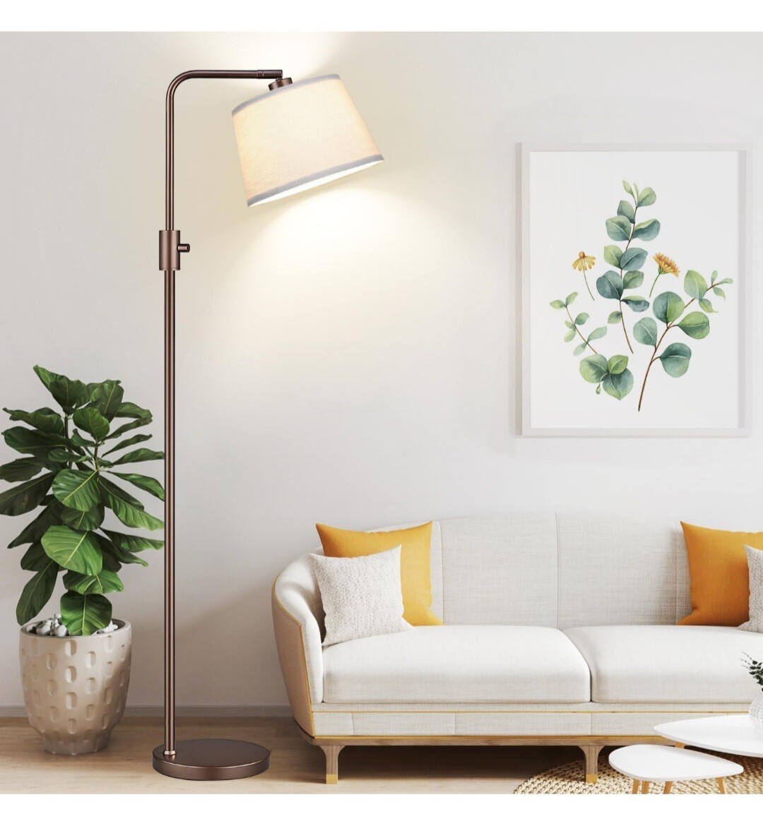 Dimmable Floor Lamp, 1000 Lumens LED Edison Bulb Included, Arc Floor Lamps for Living Room Modern Standing Lamp with Shade, Tall Lamps for Living Room Bedroom Office Dining Room - Brown