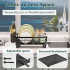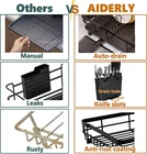 Package Contains: 1 x Cutlery holder 1 x knife block 1 x Iron frame 1 x rubber stopper 1 x Drain tray with spout 4 x drainage board feet Dish organizer To prevent rust, the drying rack for kitchen counter is composed of high-quality metal iron that has been coated, the bottom draining area has a nice center of depth (grooved) making the drained water flow out properly. Easy to Assemble No extra tools needed Everything drains into the bottom tray and then out through the spout into your sink. No leaking onto your counter. The spout is adjustable, so you can move it to adapt to your sink. This is an easy to assemble, organizes and create better drying area for kitchen. Save more space for your kitchen, AIDERLY dish drying racks are perfect for small counters. Makes it space efficient Drain directly into the sink Keeps everything separate Saver of cupboard room Resistant to rusting Easy to clean Extendable Swivel Spout The drain pipe is detachable and also can be rotated 360° to fit any side of the sink's drainage needs , the spout that goes into the sink doesn't leak onto your countertop Movable Cutlery Box The utensil holder is removable if it needs to be cleaned or moved to a different part of the drying rack. You can put your knifes in there with the pointy sharp down Anti-slip Drainborad Feet Two-inch feet on the drain tray - it's nice to get the drain tray off the countertop and let air circulate underneath. The elevated drain pan allows for easy cleaning under the rack, no worry about moisture build up and mold