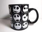 This GLOW IN THE DARK Disney mug features Jack Skellington's many faces, glowing in the dark. The 20-ounce ceramic mug is perfect for any fan of Nightmare Before Christmas. The mug is made by Disney by Silver Buffalo and was released in 2020. It is a great addition to any Disneyana collection or as a standalone piece. The mug is large and features multiple expressions of Jack Skellington, making it a unique and fun piece. Super clean used condition. Size is 4.25" x 5.5".