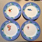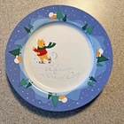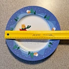 Disney Winnie the Pooh Winter Eeyore Piglet Tigger Salad Plate Set of 4 - 9" Plates are approximately 9 inches in diameter. Made of stoneware. Plates are microwave and dishwasher safe. Shipped with standard shipping .