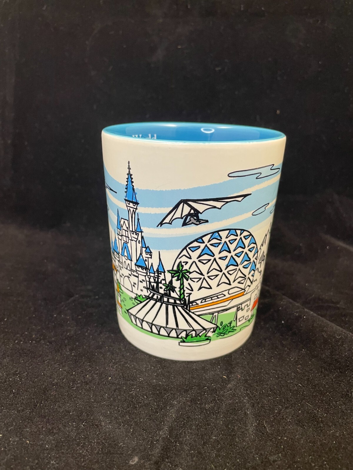 Pre-Owned WALT DISNEY WORLD Coffee Mug Skyline 4 Parks Epcot Hollywood Tower Magic Kingdom In wonderful pre owned condition. closet shelf #1 for inventory.