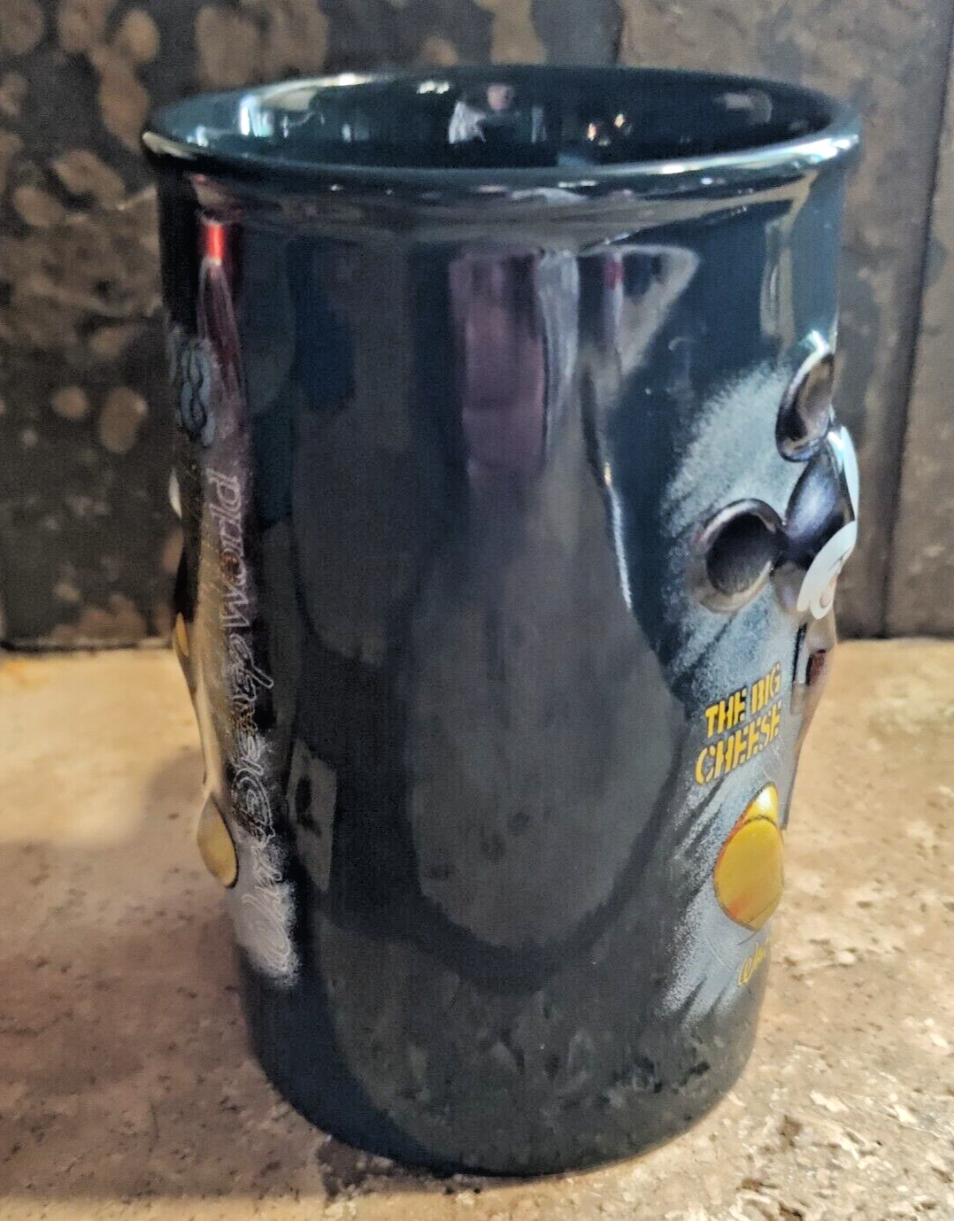 This 16oz. ceramic mug features Mickey Mouse who is raised above the flat mug and is part of the Walt Disney World collection. This is a preowned mug that shows typical wear from age and use. There are no chips or cracks.