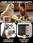 600W Dog House Heater: This dog house outdoor has a 600W output that can quickly provide sustained warmth within 3 seconds. The dog house heater provides 2 temperature settings (300W/600W) according to pets' needs, ensuring comfort in any weather Overheat Protection: Pet house heater has a built-in thermostat that automatically stops when the room temperature exceeds the safe range and restarts when it falls below the appropriate temperature, keeping your pets in a warm and comfortable environment Ensure Pet Safety: The power cord is protected by a steel spring to prevent pets from chewing through it. The heated dog house for outside includes a removable magnetic hair and dust filter for easy cleaning without removing the heater Easy to Install: You can place it directly on the floor, mount it on the wall with the tool, or you can use a rope to hang it above the chicken coop. This chicken coop heater can be easily installed in dog houses, chicken coop, and other pet enclosures Wide Use: The dog house heater outdoor operates at a low noise of 45dB, so dogs won't be irritated by the noise and it won't disturb your rest. It is suitable for a variety of scenarios including dog houses, chicken coops, cat kennels, and bunny sheds Product Description Anti-Bite Cords The 6ft chew-resistant cord, equipped with electric shock protection, effectively prevents pets from biting the cord and avoids injury. This ensures pet safety and prolongs the lifespan of the pet heater Easy Clean Feature The dog house heater features a magnetic, removable hair guard on the back to prevent pet hair from blocking the opening. It's easy to clean and convenient for daily use Overheat Protection the room temperature exceeds the setting temperature range will automatically stop working, when the room temperature is lower than the appropriate temperature the heater will restart heating