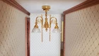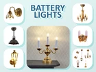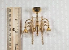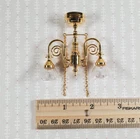 Battery Operated includes replaceable battery and magnet to help hang Ready to go, no wiring needed! Easy access on/off switch on the base Gold colored metal with fluted flower shades Ornately detailed with scrolled metal and hanging chains Hangs 2 3/8" from the ceiling, 2 3/4" wide My miniatures are for adult collectors ages 14+ Free US Shipping on Orders Over $35 Items must be in the same cart for shipping discounts to apply