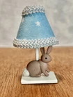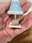 A sweet little bunny lamp( non working) for your dollhouse nursery. The lamp has a fabric shade and a wood base. All my lamps are originals and handcrafted in my studio. The lamp stands approximately 2” tall. I do combine shipping and if you have any questions please ask. Thanks!
