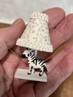 A sweet baby zebra lamp ( non working) for your dollhouse nursery or playroom. The lamp has a fabric shade and a wood base. All my lamps are originals and handcrafted in my studio. The lamp is approximately 2” tall. I do combine shipping and if you have any questions please let ask. Thanks!