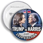 Hello, Up for sale is one(1) high quality button with the image of Donald Trump & Kamala Harris on it! You have two sizes to choose from. They have a pin on the back so you can attach it to your clothes or backpack. Glossy finish. The front is metal. THE BACK IS WHITE PLASTIC. This is a MUST-HAVE for every fan!! FREE SHIPPING ON ADDITIONAL ITEMS!! Please allow 3-5 Business Days for creation time and delivery time.