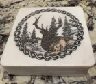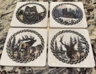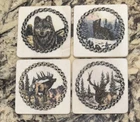 This set of four coasters is a must-have for any collector of vintage items. The beautiful wildlife pattern is engraved on the resin, making them a unique addition to any kitchen or bar. These coasters are original and made from a variety of materials, including ivory stone. The detailed design is what makes these coasters truly special. They are perfect for those who appreciate the beauty of wildlife and want to add a touch of elegance to their home decor. Whether you are using them to protect your table or as a conversation starter, these vintage coasters are a rare find that any collector would love to have. Artist signature Donnie Nahlen.