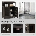 Double Door Wooden Freestanding Bathroom Storage Organizer Cabinet W/ Open Shelf ● Selected Material and Stable Structure: Made of high-quality MDF, the floor cabinet is sturdy and durable without easy deformation. Nontoxic and waterproof NC paint makes it suitable for wet environments such as bathrooms. In addition, 4 strong legs provide excellent stability, ensuring this cabinet can stand freely on the floor. ● Large Storage Space: This bathroom cabinet can make full use of the available space to provide an ideal storage solution. Wide top and open shelves are suitable for potted plants, aromatherapy, photo frames, magazines, etc. And the cabinet with shutter doors provides additional hidden storage for towels, shower gel, or toilet paper. ● Convenient and Safe Use: The bathroom cabinet has an interior shelf with 3 adjustable heights, which can meet the storage needs of items of different heights. Smooth metal knobs make the doors easy to open and close. In addition, with an anti-tipping device on the back, this cabinet can be secured to the wall to avoid wobbling or tipping. ● Wide Range of Applications: The clean lines and elegant white finish create a simple and modern appearance, enabling the cabinet to complement various decoration styles. It can be used as a bathroom cabinet, sofa side table, and nightstand, which is suitable for the bathroom, living room, bedroom, and other places. ● Easy to Assemble and Clean: With detailed instructions and all hardware delivered, it is easy to assemble your bathroom cabinet in a short time. Its smooth surface facilitates daily maintenance. Stains left on it can be quickly wiped with a soft damp cloth, which saves your time and labor. Color: Brown Material: P2 MDF Overall dimension: 23.5'' x 12'' x 31.5'' (L x W x H) Net weight: 26 lbs Weight capacity of top: 77 lbs Weight capacity of shelf: 22 lbs