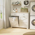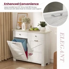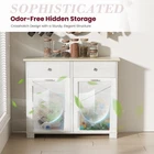 Dual Trash Can Storage with Style - Keep your kitchen, laundry, or living room clean and clutter-free with this elegant wooden freestanding trash cabinet. Designed to hold two 10-gallon bins, this tilt-out cabinet offers double the capacity for sorting trash and recyclables while staying hidden behind a sleek, modern design. Perfect for keeping garbage out of sight but always within easy reach Extra Storage with Built-In Drawer & Shelf - Beyond just storing trash, this cabinet features an additional top drawer and open shelf for all your kitchen essentials. Store garbage bags, cleaning supplies, or recycling items conveniently right above the bins, saving you space and reducing clutter in your kitchen or laundry room Smart Pull-Out Design for Convenience - This cabinet’s smooth dual tilt-out doors let you easily access your trash cans with a quick pull. The handy tilt mechanism allows you to dispose of waste or recyclables without bending down or struggling to open a lid. It’s the ultimate convenience for busy households looking for functionality Dog-Proof, Clutter-Free Solution - Worried about pets getting into your garbage? The enclosed design keeps curious dogs or cats from accessing trash or making a mess. This cabinet is the ideal dog-proof solution, ensuring your home stays clean and odor-free while keeping your four-legged friends out of trouble Sturdy Wooden Construction & Versatile Use - Made from high-quality wood, this durable trash can cabinet blends seamlessly with any home décor, from modern to rustic. Its freestanding, multi-functional design fits perfectly in the kitchen, laundry room, or even as a trash holder for a home office or island. This stylish recycling cabinet is a practical storage solution for every room