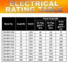 WATTS: 9W/ft @ 40 °F (5 0C) on pipe 12W/ft @ 32 °F (0 0C) on roof - in water Stay warm indoors during winter time. Dr Heater self-regulating heat cable will de-ice your roof every winter effectively and energy efficiently. No more dangerous icicles hanging off the roof, no more damaged gutters and downspouts by ice, and no more heavy snow piled up on the roof. Radiant roof and gutter heating and de-icing systems are recognized as extremely effective in preventing the problem caused by heavy snow and ice that can form on the roofs of buildings. Dr Heater’s self-regulating heat cable is suitable for roofs, gutters, and drain pipes and is capable of keeping your home or business safe from costly ice and water damage, frost erosion and dangerous falling ice. Dr Heater’s self-regulating roof and drain pipe heat cable is composed of rugged durable outer construction (Thermoplastic elastomer) to withstand winter’s harsh conditions. The self-regulating cable also features an irradiated conductive core that increases the heat output as the outside temperature falls and decreases the heat output as the temperature rises. This unique construction makes it durable, safe, and extremely energy efficient. The cable is ETL certified for the USA and Canada. DE-ICING FOR ROOF – 12W/ft at 32ºF(0ºC) These heating cables provide pipes, roof and gutter systems protection from damage due to freezing, and can be used in residential and commercial applications. Keep the water flowing in the winter. PIPE FREEZE PROTECTION – 9W/ft @ 40ºF (5ºC) Suitable for plastic or metal pipes, gutters and downspouts SELF-REGULATING – The cables automatically adjust heat output according to the ambient temperature conditions. Under cooler conditions the heat output increases, and as the temperature rises the output decreases to save on energy. HEAVY DUTY – Commercial-material that’s built to last and outperform other brands. GLASS ADHESIVE TAPE – High quality tape provided for pipe installation. *Sold separately