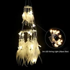 Double Circle White Feather Dream Catcher with LED Fairy Lights Wall Hanging Ornaments Ceiling Decor for Bedroom Wedding Decorations Boho Chic Party Nursery Decor ✔ Color: White ✔ Size: Dia 6 inch/ 15cm. Total length: 31.5 inch/ 80cm ✔ Material: Double metal circle, White natural feathers, Beads, Handmade flower, Mobile warm white twinkle fairy string lights Features: - Great Gift: As a best blessing gift for boys or girls, baby kids, children, etc. Believe this dream catcher brings love and happy to them. - Beautiful Decor: This white dream catcher with LED light creates a festive and cheerful atmosphere for Kids Bedroom, Nursery, Baby shower, Dream tent, Sitting room, Dorm, Balcony Window, Wedding Party etc. Warm Note: ☞ The fairy string light require AA baterries ☞ The lights and the dream catcher are separate. You can choose to add the light or not as you like. Package Included: 1 x dream catcher +1 x 20 leds star string lights ⭐️【Light up Dream Catcher Size】Dia 6 inch/ 15cm. Total length: 31.5 inch/ 80cm; ⭐️【Material】Unique double metal circle, White natural feathers, Beads, Handmade flower, Mobile warm white twinkle fairy string lights- Battery powered. Tips: If the lamp is out of power, you can replace the battery to continue to use. ⭐️【Beautiful Decor】This white dream catcher with LED light creates a festive and cheerful atmosphere for Kids Bedroom, Nursery, Baby shower, Dream tent, Sitting room, Dorm, Balcony Window, Wedding Party etc. ⭐️【Great Gift】As a best blessing gift for boys or girls kids, baby, daughter, son, children, etc. Believe this dream catcher brings love and happy to them. ⭐️【Day time & Night time】You can choose to add the LED string light for dream catcher or not. It is beautiful whether it with or without lights. The light adds more cheerful and sweet atmosphere to your room.