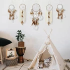 Dream Catchers: Set of 5. Size:8"x28"/20x70cm(1 piece),6"x24"/15x60cm(2 piece),5"x20"13x50cm(2 piece).Dreamcatchers originated in the 18th century. Indians would use them to capture beautiful dreams and make nightmares disappear with the morning sun. They believe that the air at night is full of all kinds of dreams, and only dreamcatchers can Filter dreams and bring them into a beautiful dreamland. Material of Dream Catcher:This is a handcrafted wall hanging decor with exquisite weaving and beautiful shape.Natural feathers, iron rings, natural wood beads, high-quality cotton lace.White dream catcher is made from cotton macrame cord rope. Cotton rope is natural and strong, ensuring the color of the dream catcher will never fade. Look as good as new even after prolonged use. Beautiful Boho Room Decor:Indian style decor, the perfect decorations for space,used for living room house decoration. dream catcher for girls bedroom.Perfect apartment wall decoration,suitable for any room you want to light up,such as living area,corridor,office,meeting room,coffee shop,sea view room or villa room,perfectly matching any space. Boho Gifts Choose: Dreamcatcher represents good wishes, original warmth and mystery,unique gifts,suitable for women,men,children,teenagers,boys,girls,wives,girlfriends,her,husband,boyfriends,him,babies,nurseries,chic and cheap gifts.Weddings and bridal showers,birthdays,anniversaries,Valentine's Day,Mother's Day,Father's Day,graduation ceremonies,the perfect dreamcatcher brings you the best wishes. We are committed to high-quality dream catchers wall hanging decoration, If you are not completely satisfied with the bohemia decoration for any reason, please contact us.