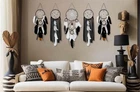 Dream Catchers: Set of 5. Size:8"x28"/20x70cm(1 piece),6"x24"/15x60cm(2 piece),5"x20"13x50cm(2 piece).Dreamcatchers originated in the 18th century. Indians would use them to capture beautiful dreams and make nightmares disappear with the morning sun. They believe that the air at night is full of all kinds of dreams, and only dreamcatchers can Filter dreams and bring them into a beautiful dreamland. Material of Dream Catcher:This is a handcrafted wall hanging decor with exquisite weaving and beautiful shape.Natural feathers, iron rings, natural wood beads, high-quality cotton lace.White dream catcher is made from cotton macrame cord rope. Cotton rope is natural and strong, ensuring the color of the dream catcher will never fade. Look as good as new even after prolonged use. Beautiful Boho Room Decor:Indian style decor, the perfect decorations for space,used for living room house decoration. dream catcher for girls bedroom.Perfect apartment wall decoration,suitable for any room you want to light up,such as living area,corridor,office,meeting room,coffee shop,sea view room or villa room,perfectly matching any space. Boho Gifts Choose: Dreamcatcher represents good wishes, original warmth and mystery,unique gifts,suitable for women,men,children,teenagers,boys,girls,wives,girlfriends,her,husband,boyfriends,him,babies,nurseries,chic and cheap gifts.Weddings and bridal showers,birthdays,anniversaries,Valentine's Day,Mother's Day,Father's Day,graduation ceremonies,the perfect dreamcatcher brings you the best wishes. We are committed to high-quality dream catchers wall hanging decoration, If you are not completely satisfied with the bohemia decoration for any reason, please contact us.
