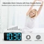 Large Display Electric Alarm Clock with Brightness Dimmer: Corded plug in clock with compact streamline design yet large number display. 2 inches jumbo illuminated LED digits ensure the time is easy to see even for impaired vision people. The brightness dimmer allows you set the brightness of display, needless worry the brightness, either too bright thus affecting your sleep or too dark to read time. Adjustable Alarm Sound: Single alarm setting with 9 minutes snooze. No harm beep alarm sound can be set from 30-90 DP as person preference. Needless worry the alarm sound, either too loud thus frightening you or too low to wake you up from deep sleeping. One simple ON/OFF button allows you disable the alarm on weekend. USB Charging Port: Convenient USB port allows you to charge your smartphone or other electric device without plug in wall. handy, convenient and organized. Easy Operation Clock: Intuitive setting button, experience zero stress when setting the time or alarm. Easy for kids, seniors and the elderly. Outlet Powered with Memorized Battery Backup : Plug in to power the clock with the included DC adapter . 2 x AAA batteries (not included) needed for storing time and alarm settings in case of power outage. With backup battery power source only, the screen will go blank and alarm will not sound. Product Description Kindly note that the digital clock is NOT battery operated DreamSky Simple, Handy and Easy to Operate Alarm Clock with Attractive Look DreamSky Small Digital Clock is developed based on customer preference, simple, handy and with basic feature needed. Streamline design with smooth finish, compact size yet large bold blue number display. with 2" jumbo number display in a high contrast screen, time is easy to see at a glance. Plug In Digital Clock with Memorized Battery Feature This digital desk clock is outlet powered only. Both adapter (US Plug) and USB cable (length: 4.1 FT) are included. The working voltage is 110V-240V applicable. About Battery Backup The battery feature works for memorizing the time and alarm settings in the case of main power outage. During the battery backup, the screen will go blank and alarm will not sound, but the clock will display correct time once power returns. USB Charging Function An extra USB charging port allows you to charge your cellphone, pad or other electronic smart device any time. Handy charging and convenient. Adjustable Brightness Dimmer The dimmable alarm clock comes with adjustable display brightness. You are able to adjust the display to bright level at daytime and dimmer at night without disturbing other sleeper. 12-24H Switch LED clock is 12 or 24 hour display optional. PM icon will display while time reaches to afternoon if 12hr display model selected. Adjustable Alarm Volume The sound of alarm can be set from 30-90 DP. Needless to worry the alarm sound, either too loud thus frightening you or too low to wake you up from deep sleeping. One simple ON/OFF button allows you to disable the alarm on weekend. Touch Style Snooze Touch style snooze on the top will give you a non-stress oversleep experience and catch an extra shuteye. After 9 minutes it will ring again, no worries to be late. *Trouble Shooting* Q: Can this digital clock run on batteries alone? A: No. Battery function only works to store the clock time and settings in the case of power cut. Adapter is required as the main power source of this alarm clock. Q: what is the size of this digital alarm clock? A: It sizes 2.6 inches in height, 1.4 inches in width and 5.3 inches in length. Q: How do you turn off the alarm once it wakes you up? A: When alarm goes off, you can press any button at the back of the clock to turn off the alarm. Q: How long does the alarm stay on? A: The alarm will last 2 minutes then shut off automatically Q: Is there a larger model of this clock? A: Yes. See above comparison chart the "Large Digital Alarm Clock".