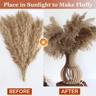 Natural Pampas Grass Decor - Natural Dried Flowers Vase Filler for Weddings, Table Decor, Party Decorations & Home Decor DRIED PLANTS FOR DECORATION - Pompas Floral Bouquet contains various kind of dried flowers for decorative floral arrangements. Dried flower with stems perfectly crafts to enhances the beauty of living room decor. BOHO FLOWERS AS BEAUTIFUL GIFT - Surprise your loved ones with the gift of Pampas Flowers! Perfect for boho home decor, Boho wedding decor and floral home decor. PERFECT DECORATIVE FEATHERS - Small dried flowers are a great choice for making weddings, engagements, baby & bridal showers extra special. Boho pampas grass tall adds a touch of elegance and charm to the decor. VERSATILE FLOWERS FOR VASE DECORATION - These centerpiece table decorations pampas bouquet is perfect for various places like indoor, offices, parties, gardens, festivals, Get creative and make your own boho-inspired dry flower arrangements. FLUFF WITH SUN & HAIRSPRAY - If your fluffy tall pampas grass bouquet looks a bit squished from the journey, no problem! Place artificial flowers boho decor under the sun for a few hours to restore its fluffy, soft charm.