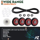 Package included: 1 dryer belt, 4 drum support rollers, 1 idler pulley Perfect : this is aftermarket part replace Drum Roller:W10314173 14210118 W10314171 WPW10314173 3389902 8536973 8536974 Idler Pulley : 279640 3388672 W10468057 697692 Belt: 661571 66157-1 WPW10112954 W10112954 AP6015116 Fits the following models and some others. Use CTRL F to search for yours MED9600SQ0 MED9700SQ0 MGD9600SQ0 MGD9700SB0 MGD9700SQ0 MED9700SB0 MED9800TK0 MGDB850WQ0 MDE17CSAGW0 MDE17CSAYW1 MDE17CSAZW1 MDE17CSBGW0 MDE17CSBGW1 MDE17MNAGW0 MDE17MNAYW1 MDE17MNAZW1 MDE17MNBGW0 MDE17MNBGW1 MDE17PDAYW1 MDE17PDAZW1 MDE17PRAYW1 MDE17PRAZW1 MDE18CSAGW0 MDE18CSAYW0 MDE18CSAZW0 MDE18MNAGW0 MDE18MNAYW0 MDE18MNAZW0 MDE18PDAYW0 MDE18PDAZW0 MDE18PRAYW0 MDE18PRAZW0 MDE22PDAGW0 MDE22PDAYW0 MDE22PDAZW0 MDE22PDBYW0 MDE22PDBZW0 Note: If you are not sure about the compatibility please us for advice. we will solve your problem within 24 hours Package included: 1 dryer belt, 4 drum support rollers, 1 idler pulley Perfect : this is aftermarket part replace W0118 W10314171 WPW8536974 Drum RollerW92 Idler Pulley7-1 WPW10112954 W10112954 AP6015116 Belt Compatibility: Made for use with Brand Maytag, Whirlpool, Amana, Maytag, Kenmore, KitchenAid . . . Model Compatibility: Maytag 3000 Series, MED9600SQ0 MED9700SQ0 MGD9600SQ0 MGD9700SB0 MGD9700SQ0 MED9700SB0 MED9800TK0 MGDB850WQ0 MDE17CSAGW0 MDE17CSAYW1 MDE17CSAZW1 MDE17CSBGW0 MDE17CSBGW1 MDE17MNAGW0 MDE17MNAYW1 MDE17MNAZW1 MDE17MNBGW0 MDE17MNBGW1 MDE17PDAYW1 MDE17PDAZW1 MDE17PRAYW1 MDE17PRAZW1 MDE18CSAGW0 MDE18CSAYW0 MDE18CSAZW0 MDE18MNAGW0 MDE18MNAYW0 MDE18MNAZW0 MDE18PDAYW0 MDE18PDAZW0 MDE18PRAYW0 MDE18PRAZW0 MDE22PDAGW0 MDE22PDAYW0 MDE22PDAZW0 MDE22PDBYW0 MDE22PDBZW0 Note: If you are not sure about the compatibility please us for advice. we will solve your problem within 24 hours