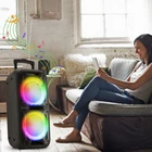 Dual 10" Woofers Bluetooth Rechargeable PA Speaker +Bluetooth +USB/SD/FM/EQ/LED There's plenty of powerful sound coming out of this Bluetooth speaker, but that's only a start in describing how this can make a party. As it plays the music, a spectrum of LED light patterns, ranging from pure white to rainbow, can pulse along to the music, syncing up with every beat.If you have music stored on a USB flash drive, simply plug it into the corresponding port, and you'll be able to easily listen to your favorite playlists. There's also an RCA line-in for connecting to CD players and other devices. With Built in Rechargeable Battery, Trolley Handle and Wheels allows you to take your Party anywhere! Features: ✨ Dynamic LED Neon Lights: Elevate your party atmosphere with vibrant neon LED lighting that syncs to your music, offering an immersive audio-visual experience. ✨ Versatile Connectivity & Playback: Stream your favorite tunes via Bluetooth, USB, SD, or Aux-in. Plus, the built-in MP3 player and two microphone inputs make it ideal for DJ sets and karaoke. ✨ Unmatched Sound Quality: Experience powerful, room-filling audio with the speaker's dual 10" woofers and X-Bass technology, delivering crisp, thunderous sound perfect for parties, outdoor events, and karaoke nights. ✨ Portable Design for Easy Transport: Featuring a trolley design with durable wheels and a retractable handle, the Speaker built for easy mobility, making it perfect for indoor and outdoor use. ✨ Complete Entertainment Package: Comes equipped with a wireless microphone and remote control, allowing you to manage your music and engage your audience from anywhere in the room. Specifications: Color: Black Material: molded PP plastic cabinet Charging time: 5-8 hours Play time: 6 hours (fully charged) Input Voltage: AC 110-240V 50/60Hz Output Power: 100W Battery Capacity: 12V/7A Rechargebale Battery Product Unit Size: 72*34*32cm/28.3*13.4*12.6inch Package Include: 1 X Dual 10in Speaker 1 X Wireless Microphone 1 X Remote Control 1 X 3.5mm to RCA Cable 1 X Power Cable 1 X Manual Payment Delivery details Terms of sales Feedback Contact us Payment Immediate payment is required. Shipping will be arranged within 1 business day once payment is cleared. To uphold a shipping speed, your order will be processed almost immediately. If you change your mind after your payment is confirmed, we will do our best to cancel the order, however, we CANNOT guarantee the cancellation. Delivery details FREE SAME BUSINESS DAY MONDAY- FRIDAY SHIPPING FROM USA. No shipping on Weekends or US Public Holidays. No responsibility for any custom duty. We will ship your order to your Ebay Verified address provided. Please verify your address and make sure that it is your current address before making your payment. Any address change requests after your payment CANNOT be guaranteed. Shipping information will be updated when available. All of our products can be shipped internationally. To confirm the shipping rates to your country please refer to eBay's Shipping Tab above. Any brokerage, customs, and duty fees associated with international shipments are the customer's responsibility and are not included in our shipping fee. A phone number is required for the customs documents. Failure to provide one will result in delays. We do not include an invoice or any advertising materials with our shipments. Terms of sales We stand behind our items and offer 60 days warranty. All items are in new and working condition unless specified otherwise elsewhere in the description. All Returns - defective or otherwise - MUST BE PREAUTHORIZED to guarantee refund or exchange. Please contact us to get an authorization and return address. Buyer agrees to pay for the cost of re-shipment for undeliverable or wrong addresses. Buyer is responsible for Return Postage if return/replacement is not a result of our mistake such as wrong item. Replacement or Refund will be made upon receipt of the returned item. Please include tracking number so we can process ASAP. If you do not wish to wait for a replacement, please repurchase the item. Feedback We strive to provide the best products and services. Your positive feedback 5 stars DSR help us do better. If anything about your transaction did not meet expectations, please CONTACT US and give us the opportunity to make things right. We are always here to help. Contact us Please do not hesitate to CONTACT US . You can message 24/7 on eBay for all questions and inquiries. We will get back to you within one business days at the latest from Monday- Friday.