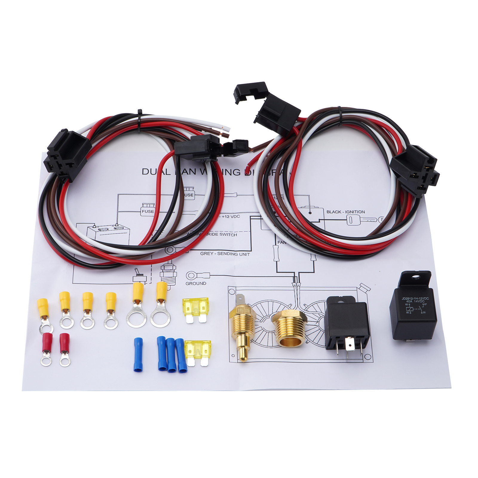 Description: Bestever_auto Universal TWO Dual Electric Fan Relay Kit w Thermostatic Sensor Switch 185 On Description: This is a heavy duty universal electric fan wiring kit. This kit includes a waterproof relay, 3/8" (or 1/2")NPT thermostatic switch (185° on / 175° off), and fuse block. For single fan setups. Perfect for your muscle car, 4x4, or hot rod! 12 volt Electric Fan Wiring Harness, Relay, Sending Unit & Circuit Breaker 12V These are perfect to use to turn your Electric Cooling Fan on & off The 40 Amp Relay Helps take the Load & Aids in Starting the Fan with less Amps Also includes an Overload Circuit Breaker Includes the Relay Wiring Harness with 350cm of Wire. Also included is an assortment of wiring connectors to help aid in installation. Professional installation is highly recommended. Instructions Included 100% Brand new and never been used. Electric Fan Wiring Harness Kit 3/8" NPT Switch(Inside a lid that can be converted to 1/2") On at 185 Degrees, Off at 175 Degrees Crude wire length:350cm Thin Wire length: 200cm Works with OEM wiring Inline Fuse Blade 30A 40A Waterproof 40Amp Relay Optional Switched Overide Capability Features: Work for 265 283 305 307 327 350 383 400 396 402 427 454 472 502 260 289 302 351W 347 352 360 390 406 427 428 429 460 351C 351M 400M 273 318 340 360 361 383 400 413 426W 440 455 330 326 ENGINES. This kit is set up to turn your electric fan on at 185° degrees and shut off at 165° degrees and will work with any 12 volt system. It is a 3/8" pipe thread, this kit includes everything you'll need to hook up to your fan. Wires For the two red wires,please connect the long red wire to the battery and the short red wire to the fan. Other If you have any questions, please contact us for more details. Part Number: PC2054S,PC-2054,PC2054S,HC6105C Fitment : Fit For most Rods and Classics Engines including For GM (CHEVY, GMC, OLDS, CADILLAC, PONTIAC, BUICK, FORD, & MOPAR (CHRYSLER, DODGE, PLYMOUTH) , Please measure to make sure this is the right Application: 2X 8 inch Fans 2X 10 Inch Fans 2X 12 Inch Fans 2X 14 Inch Fans Single 8 Inch Fan Single 10 Inch Fan Single 12 Inch Fan Single 14 Inch Fan Single 16 Inch Fan Package includes: 1X Electric Fan Wiring Harness Kit Item Specifics Sending Unit Thread Size 3/8-18 NPT Items Included Fan Shroud Manufacturer Part Number PC2054S,PC-2054,PC2054S,HC6105C Material Aluminum Vintage Part Yes Fan On Temperature (F) 185 degrees F Brand SPARKWHIZ Type Fan Shroud Fan Off Temperature (F) 175 degrees F Manufacturer Warranty Lifetime Voltage 12V Fits for engines(2) 406 427 428 429 460 351C 302 351W Fits for engines(3) 347 352 360 390 440 455 330 326 Fits for engines(4) 351M 400M 273 318 340 360 361 383 400 413 426W Features Durability Tested Universal Fitment Yes Fits for engines(1) 265 283 305 307 327 350 383 400 396 402 427 454 472 502 260 289 Performance Part Yes Payment We accept Payoneer/Paypal/Google Pay/Visa/Master Card/Amex/Discover for Payment. Shipping All items will be ship within 1working days, and we will ship out all orders as soon as possible after payment verified, please allow up to 1-4 business days for delivery. Returns 1) If you received an incorrect, damaged, defective, or item not as described, contact us for a partial/full refund or replacement on our cost. 2) If you want to return the item, please contact us within 30 days after package received. Return products must also be in its original condition: including box, packaging and all other accessories. Contact Us We can be reached at ebay message most emails are answered within 24 hours. Our normal business hour is Monday to Friday 9AM to 5PM PST . All emails and orders will NOT be processed during weekends and holidays. happy shopping. Bestever_auto DESCRIPTION PAYMENT SHIPPING RETURN POLICY CONTACT US Universal TWO Dual Electric Fan Relay Kit w Thermostatic Sensor Switch 185 On Description: This is a heavy duty universal electric fan wiring kit. This kit includes a waterproof relay, 3/8" (or 1/2")NPT thermostatic switch (185° on / 175° off), and fuse block. For single fan setups. Perfect for your muscle car, 4x4, or hot rod! 12 volt Electric Fan Wiring Harness, Relay, Sending Unit & Circuit Breaker 12V These are perfect to use to turn your Electric Cooling Fan on & off The 40 Amp Relay Helps take the Load & Aids in Starting the Fan with less Amps Also includes an Overload Circuit Breaker Includes the Relay Wiring Harness with 350cm of Wire. Also included is an assortment of wiring connectors to help aid in installation. Professional installation is highly recommended. Instructions Included 100% Brand new and never been used. Electric Fan Wiring Harness Kit 3/8" NPT Switch(Inside a lid that can be converted to 1/2") On at 185 Degrees, Off at 175 Degrees Crude wire length:350cm Thin Wire length: 200cm Works with OEM wiring Inline Fuse Blade 30A 40A Waterproof 40Amp Relay Optional Switched Overide Capability Features: Work for 265 283 305 307 327 350 383 400 396 402 427 454 472 502 260 289 302 351W 347 352 360 390 406 427 428 429 460 351C 351M 400M 273 318 340 360 361 383 400 413 426W 440 455 330 326 ENGINES. This kit is set up to turn your electric fan on at 185° degrees and shut off at 165° degrees and will work with any 12 volt system. It is a 3/8" pipe thread, this kit includes everything you'll need to hook up to your fan. Wires For the two red wires,please connect the long red wire to the battery and the short red wire to the fan. Other If you have any questions, please contact us for more details. Part Number: PC2054S,PC-2054,PC2054S,HC6105C Fitment : Fit For most Rods and Classics Engines including For GM (CHEVY, GMC, OLDS, CADILLAC, PONTIAC, BUICK, FORD, & MOPAR (CHRYSLER, DODGE, PLYMOUTH) , Please measure to make sure this is the right Application: 2X 8 inch Fans 2X 10 Inch Fans 2X 12 Inch Fans 2X 14 Inch Fans Single 8 Inch Fan Single 10 Inch Fan Single 12 Inch Fan Single 14 Inch Fan Single 16 Inch Fan Package includes: 1X Electric Fan Wir