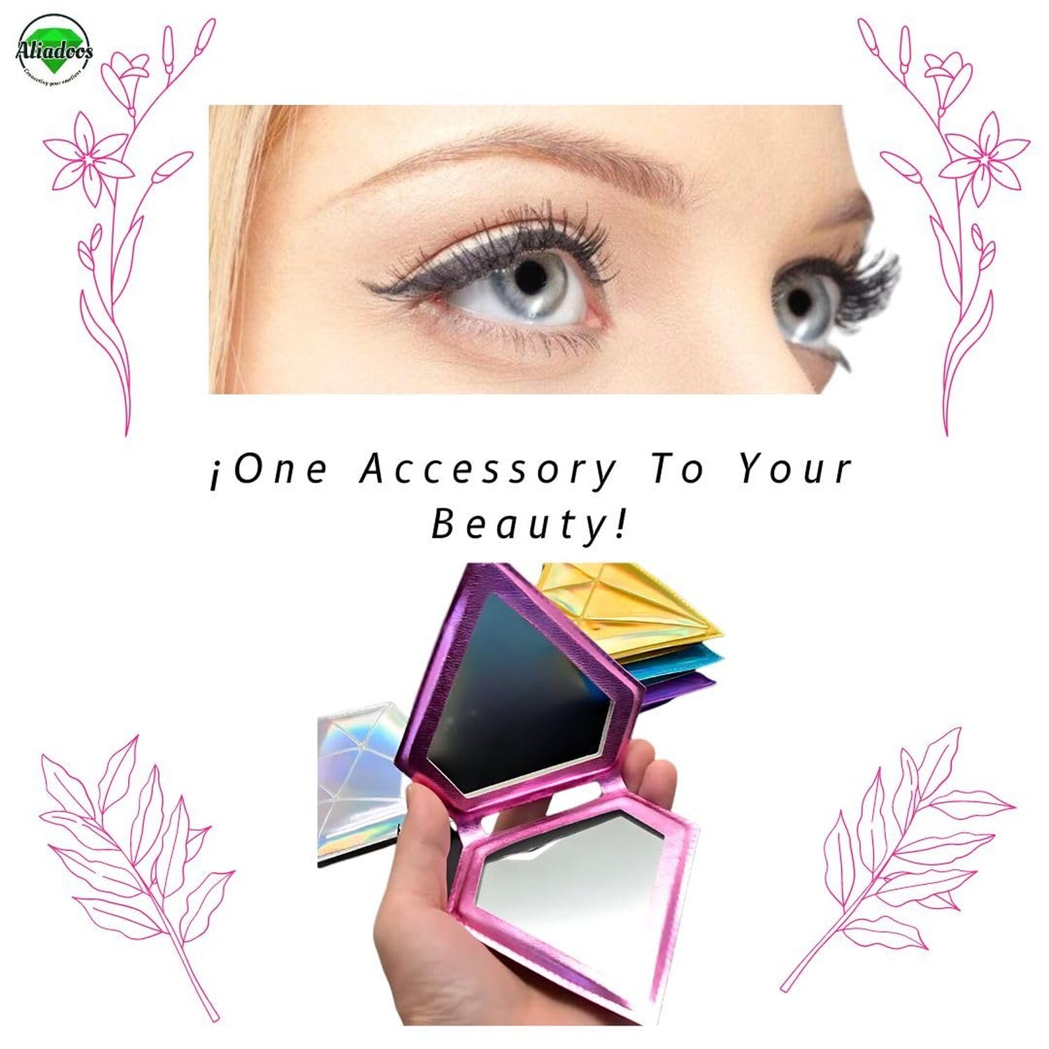 Dual Sided Compact Mirror Portable for Travel Home Office Makeup Hand Size or Pocked Iridescent Foldable in Diamond Shape Mirror for Women Girls Product Details Color: Silver Brand: ALIADOOS CONNECTING YOUR EMOTIONS MPN: 2AMS00001 UPC: 850068217045 EAN: 0850068217045 Brand: ALIADOOS CONNECTING YOUR EMOTIONS Room Type: Portable Shape: Diamond Product Dimensions: 3.82"L x 3.74"W Frame Material: Pu, Pvc, Glass, Foam Brand: ALIADOOS CONNECTING YOUR EMOTIONS Room Type: Portable Shape: Diamond Product Dimensions: 3.82"L x 3.74"W Frame Material: Pu, Pvc, Glass, Foam Style: Diamond Mounting Type: Dresser Mount Finish Type: Monochromatic Special Feature: 2x magnifying, Dual sided compact mirror, Shimmering foldable, Hand size or pocked, Perfect Gift Color: Silver Specific Uses For Product: Travel Mirror, Making it an essential accessory for women and girls who are always on the go, Perfect gift., Cosmetic Mirror, Makeup Mirror, Portable 2 xx Mirror Number of Items: 10 Material: Pu, Pvc, Glass, Foam Item Weight: 1.44 ounces Assembly Required: No Magnification Maximum: 2 x Manufacturer: Aliadoos Connecting your emotions Size: Small Standar, 3.82 x 3.74 Inches UPC: 850068217045 Global Trade Identification Number: 45 Country of Origin: China Item model number: 2AMS00001 Date First Available: October 23, 2024 [Sleek, Shimmering Design]: This beautiful diamond shaped compact mirror, cover of a shimmering foldable shell in elegant rose, silver, blue, pink, gold or purple pu, designed to fit seamlessly in your hand, handbag, or mini purse for all your occasions, fine like Shiny leather slim. xx [Ideal Travel Companion]: Slim and portable, this handheld cosmetic mirror fits perfectly in your wallet or pocket, ensuring you always have access to quick touch-ups during travel or a busy day out with friends, two mirror at one pcs. any our colors matches your black handbag or pack, folding bulk-ing mirror. [Durable Leather Finish]: Encased in high-quality leather, our diamond compact mirrors offer durability and protection while maintaining a chic aesthetic making them cute enough to show off yet robust enough to withstand everyday wear and tear open or close. [Perfect Gift Piece]: Packaged enticingly for gifting purposes, this compact mirror makes an ideal present for girls, women or someone who likes. Its stylish appearance and practical functionality ensure it will be adored by anyone who loves their makeup routine. [Pieza de regalo perfecta]: Bonita cubierta y diseno atractivo, apto para un fino y delicado detalle, este espejo compacto es un regalo ideal para ninas, mujeres o alguien a quien le guste. Su aspecto elegante y funcionalidad practica aseguran que sera adorado por cualquier persona que ama su rutina de maquillaje.