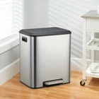 Dual compartment trash can, 2 removable inner bucket, Two interior plastic liner buckets with handles can be easily removed for convenient waste disposal. Stainless garbage cans for kitchen, elegant, fingerprint-proof, smudge resistant, and durable. It's also easy to clean. Kitchen trash cans with foot pedal, hands-free opening. Soft-close lid reduces noise from opening/closing and extends product life span. This dual garbage and recycling can is a great helper for you to classify kitchen garbage, makes it easier for you to separate dry and wet waste. Inner bucket Size: Total 8 Gallon (2 x 15 Liter Bins/ 2 x 4 Gallon), inner bucket space is totally enough for a small family's daily use. Overall dimensions: 16.5 x 12.8 x 19.5 Inches.
