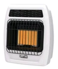 This Dyna-Glo infrared vent-free wall heater is a reliable and efficient way to provide warmth to your home. With a power source of gas and a heating element of brass, this portable heater has a heating system that uses coils and produces less than 2000 BTU. It has one heat setting and an auto shut-off feature, making it safe and easy to use. The white color and aluminum and brass materials add to the appearance of this heater, which can be mounted on a wall in any room. It has a voltage of 12 V and an annual fuel utilization efficiency of less than 80%. This heater ships fast!