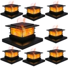 PLASTIC DANCING FLAME SOLAR POST LIGHTS: 8 pack modern post cap lights powered by solar, each with 72 pcs yellow SMD LED, they are the perfect decorative outdoor lighting and no electricity required. Solar LED flickering flameless candles lights, add a 360 degree viewing angle illuminate charming to your garden, decorate your fence, deck, porch or yard. Measurement: 5.8 x 5.8 x 3.54 inches DANCING FLAMES LIGHTS: A safe alternative to the real flame effect - 72 pcs high brightness SMD LEDs cast a safe, soft and gentle glow, produces a very calm and impressive atmosphere. When night comes, it lights up and the LED flame light leaping, which will bring you a beautiful scenery. There are 2 LIGHTING MODE - FLAME and ON, if you want flame effect, please turn to FLAME. Please note that they are designed for outdoor decoration, maybe not bright enough, but the light is soft and gentle SOLAR POWERED: This beautiful solar light is NOT electricity needed. Powered by solar, charged in full and direct sunlight for 6-8 hours. There is a tab at the back of the solar panel, please remove it before charging, so that this solar LED lights will automatically turn on at night and turn off at dawn. For your convenience, each include 1000MAH NI-MH AA rechargeable battery EASY TO ASSEMBLE: Complete with detailed instructions. Our fence post solar lights come with different sizes of bases, which are compatible with any standard true size 3.5"x3.5", 4"x4", 4.5"x4.5", 5"x5", 5.5"x5.5" wood / vinyl / plastic post cap. These solar garden lights can be done in a few minutes, comes with mounting kit, simply screw the solar cap lights into highest point on the railing OUTDOOR DECORATIVE LIGHTS: These 8 pack garden flickering flame post lights can work normally under kinds of weather with the waterproof rating of IP44, no worries about little rain, snow, frost, or sleet. They can be placed in the front, backyard, along driveway, walkway, sidewalk, around your patio or porch, adds a modern look for your outdoor lighting. In stormy weather, keep the solar lights indoors to avoid damaging the solar panels